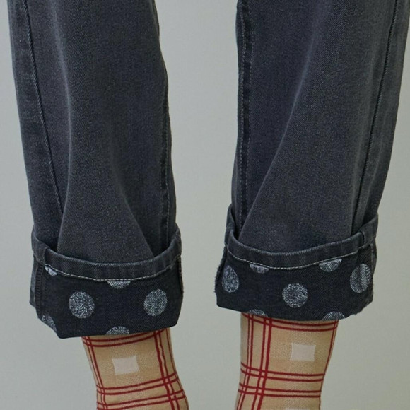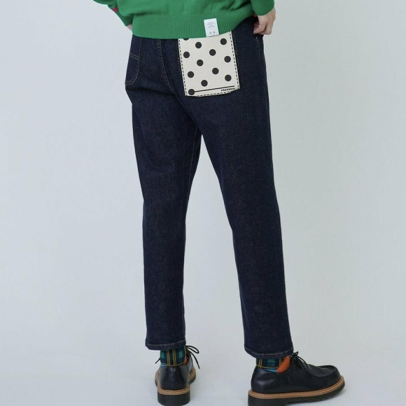 Design: The popular movement denim that is popular in FRAPBOIS is spacious from the waist to hips and thighs, but its unique silhouette with a refreshing tapered towards the hem is a popular secret that goes well with tops and can be used daily. Aiko Nic design point with a thigh pocket and patch name. The knitted ribs on the rear belt create a slightly sporty look, making it a brand-like play. When you wrap the hem, the print of the dot catches your eye, and the back hip has a pop dot pattern flasher to create an accent. The flasher is a cute item even if it is dared to wear it.