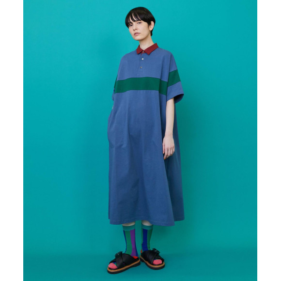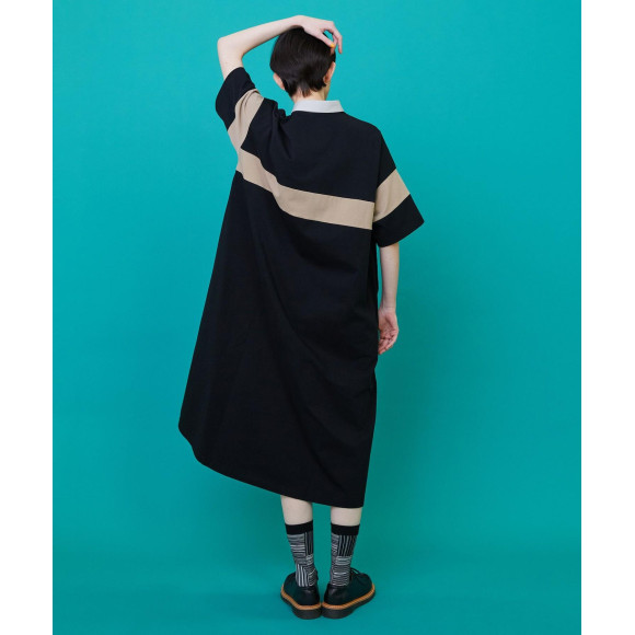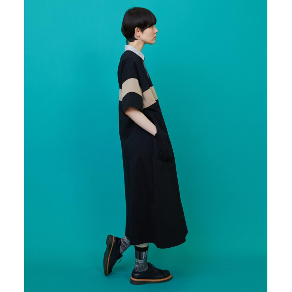 Design: A cut-and-sew dress with a relaxed silhouette that looks like a lager shirt. The contrasting colors of the body and sleeves and the shirt collar create a sporty atmosphere. There is also a pocket on the side, so it has a design that is easy to use.