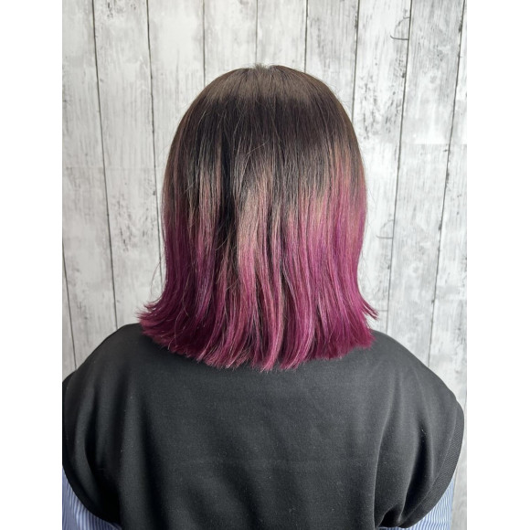 The tip of the hair was originally bleached, so we put it on raspberry purple, added an impact, recreated the inner color, and the root was colored with pink brown in 10 tones.☆