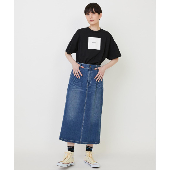 Today, I would like to introduce a narrow skirt with a refreshing silhouette and a movement denim skirt.