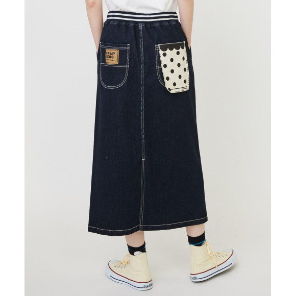 Design: A narrow skirt that goes well with any top with a refreshing silhouette from the popular movement series. The front creates a refreshing impression of a denim skirt, but the playful design with a knitted line rib is accented with a slightly sporty look. The stretchy texture of the material makes it comfortable to wear and has a beautiful silhouette. The back hip has a pop dot pattern flasher to create an accent. The flasher is a cute item even if it is dared to wear it. Available in two colors: blue with an old image and navy with a beautiful look.
