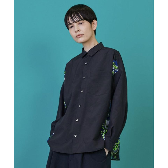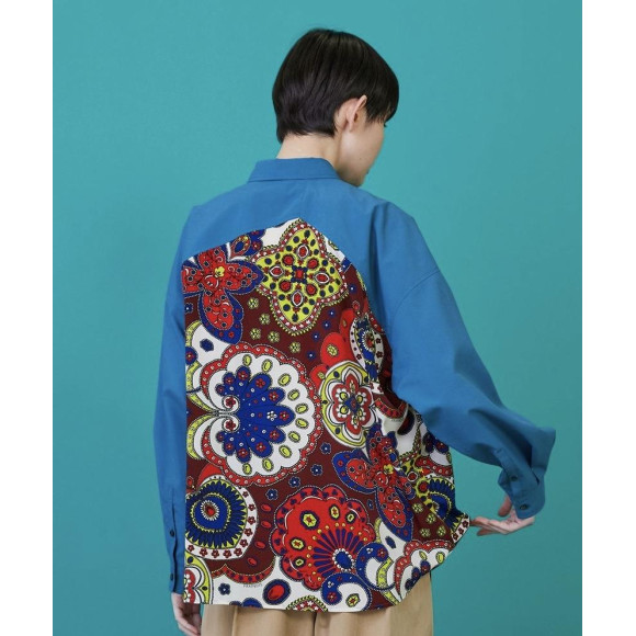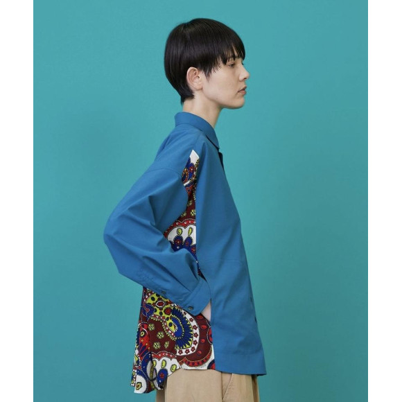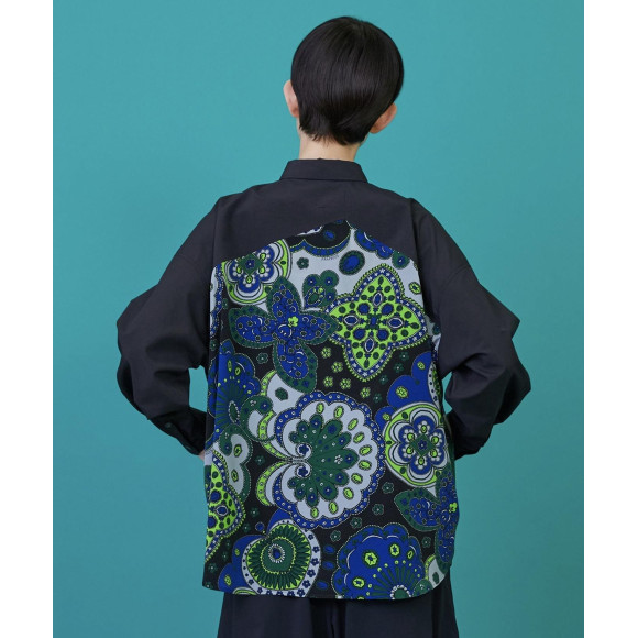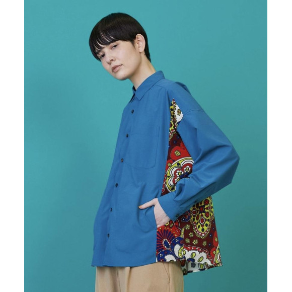 [Design] Based on a loose silhouette shirt blouse, a bold fabric with a scarf motif with beautiful colors on the side and back are combined. With pockets on the switch, this item can be worn as a light jacket.