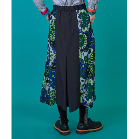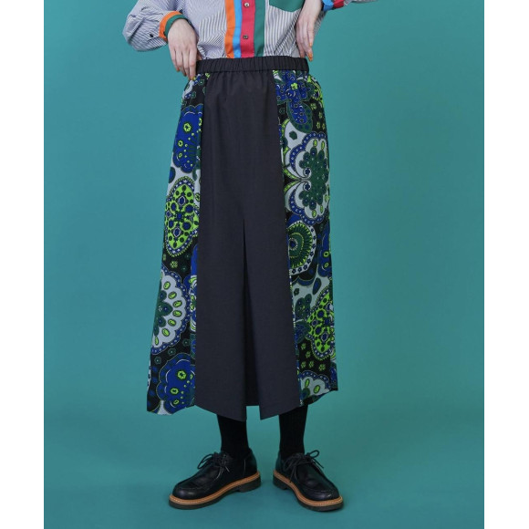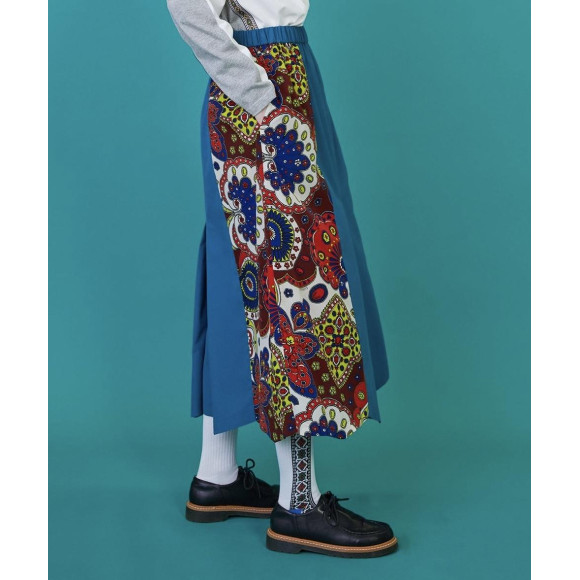 [Design] A skirt designed to look like a scarf on the side. Box pleats are incorporated into the front back to express a three-dimensional depth.