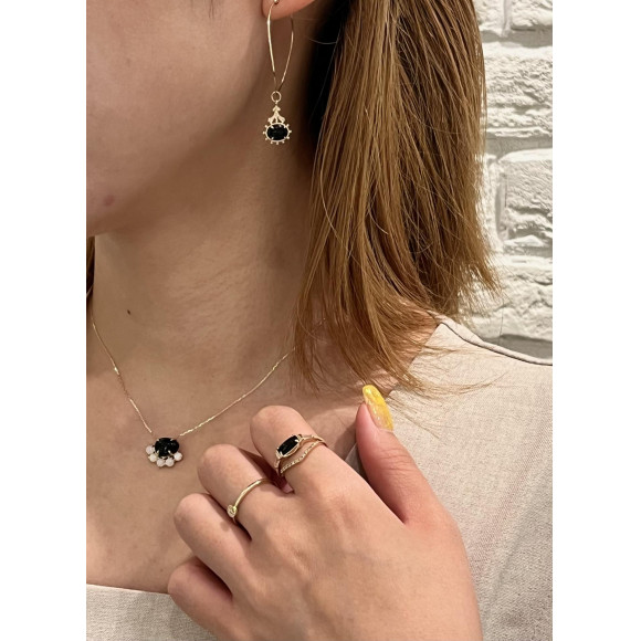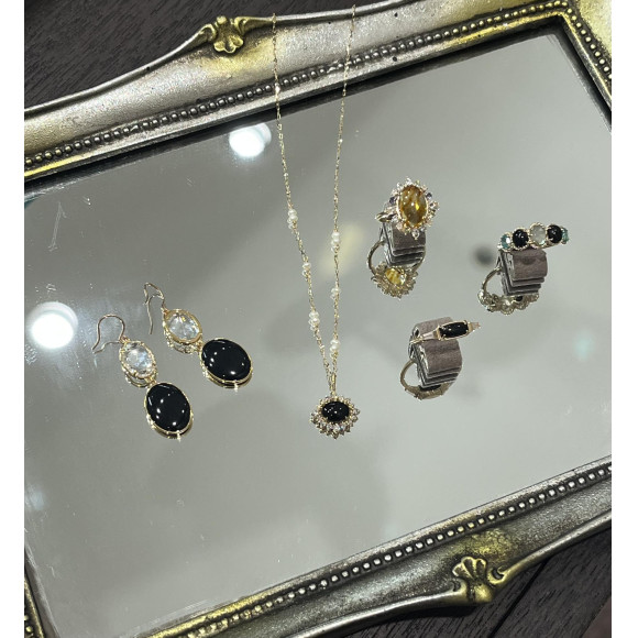 The warm colored amber and the deep jet color are recommended as an accent for your coordination.