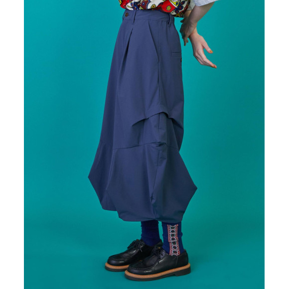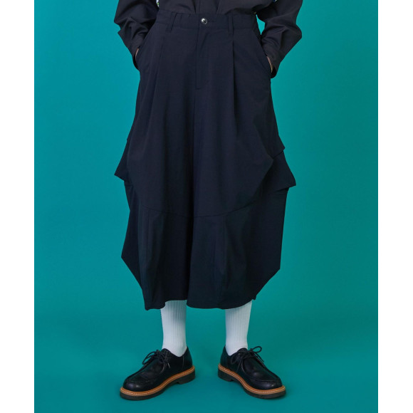 [Design] Balloon silk pants with plenty of hips and thighs create a complex and interesting silhouette with tucks and three-dimensional patterns. The lightness and firmness of the material make it convexed when worn, it will naturally blend into nature and become a cute accent.