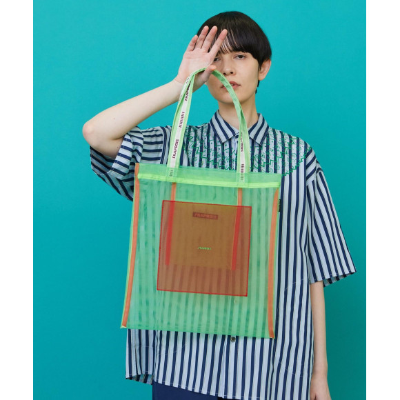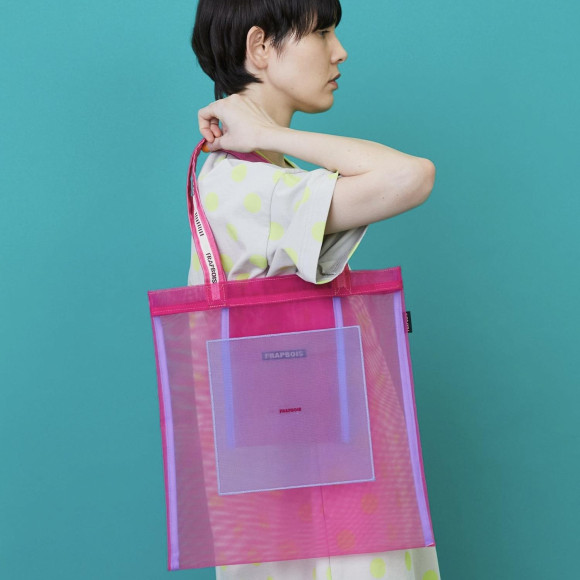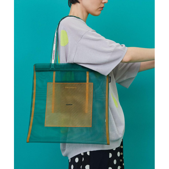 Design: A mesh material featuring sheer and lightness appears in the popular Thoth series in FRAPBOIS. The tightness of the material makes the item easy to get a tight look. A unique color scheme is created by overlapping the mesh material in two colors. A delicate brand logo embroidered in the center creates a simple yet accent.