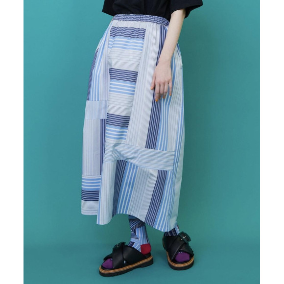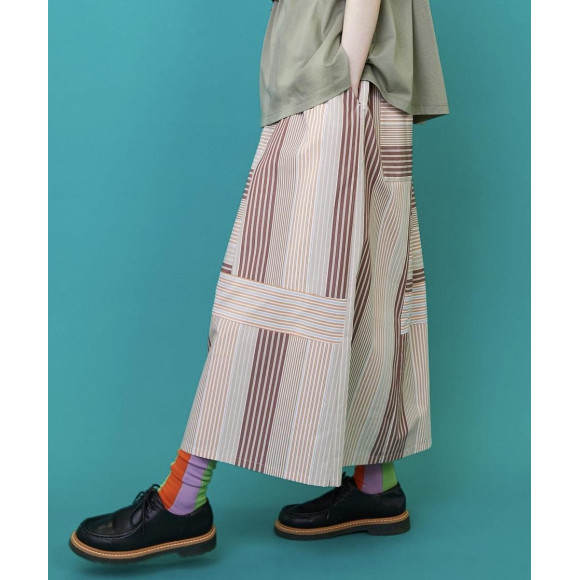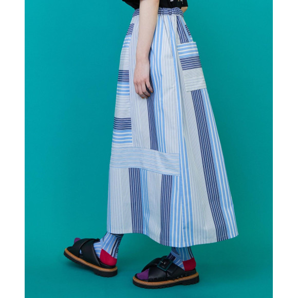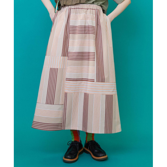 Today, I would like to introduce an original fabric that looks like four striped patterns are docked, and a multi-strip skirt that boldly switched from a simple flare skirt.