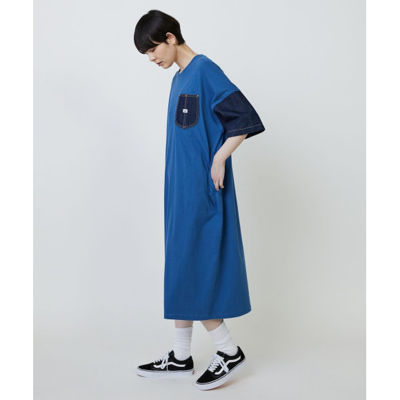 [Design] Based on a loose, wide silhouette dress, it combines sleeves, chest pockets, hip pockets and denim fabrics. The work style of the pocket and the relaxed silhouette creates a nuke feeling that doesn't get too tight. The large "Lee" name on the hip pocket is a casual accent.