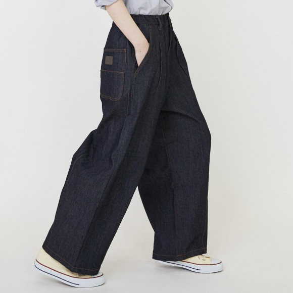 Design: "Moment Denim" is now available from the popular denim pants series in FRAPBOIS. The wide tapered silhouette, which had never been before, creates a solid look with the tuck at the front, while the darts taken before and after the hem give a gentle and calm tapered feeling. The waist is easy to make with rubber and strings, and the elasticity of the material itself is comfortable to wear, and it is also nice to wear. The original patch of the hip pocket creates an accent casually. There are plenty of sizes available, so you can enjoy choosing a size in your favorite atmosphere. Available in two colors: a refreshing saxophone that goes well with the item and a navy with a chic and traditional atmosphere.
