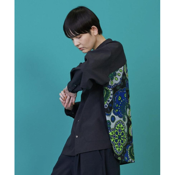 [Design] Based on a loose silhouette shirt blouse, a bold fabric with a scarf motif with beautiful colors on the side and back are combined. With pockets on the switch, this item can be worn as a light jacket.