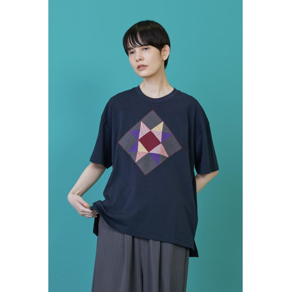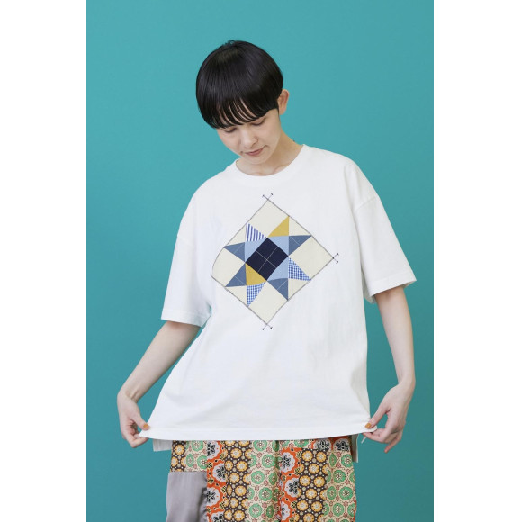 [Design] Based on a T-shirt with a slightly relaxed silhouette, a boldly traditional patchwork pattern "Eight Point Star" is a combination of appliques on the front. If you look closely, it is full of the warmth and delicateness of the handcraft style that cannot be expressed by print.