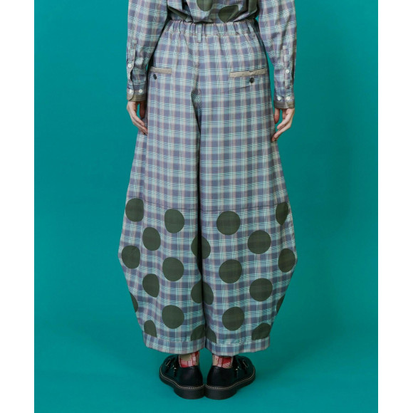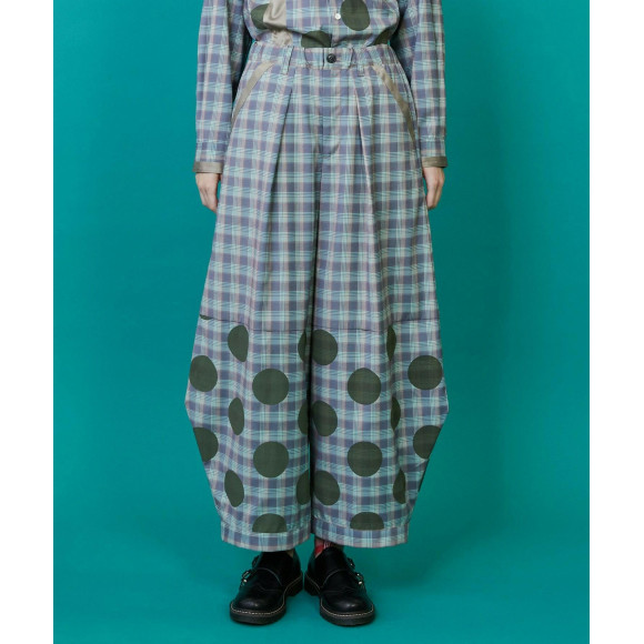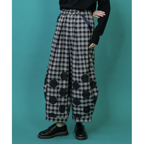 Today, I would like to introduce easy pants with a cocoon silhouette and check-on-dot pants.