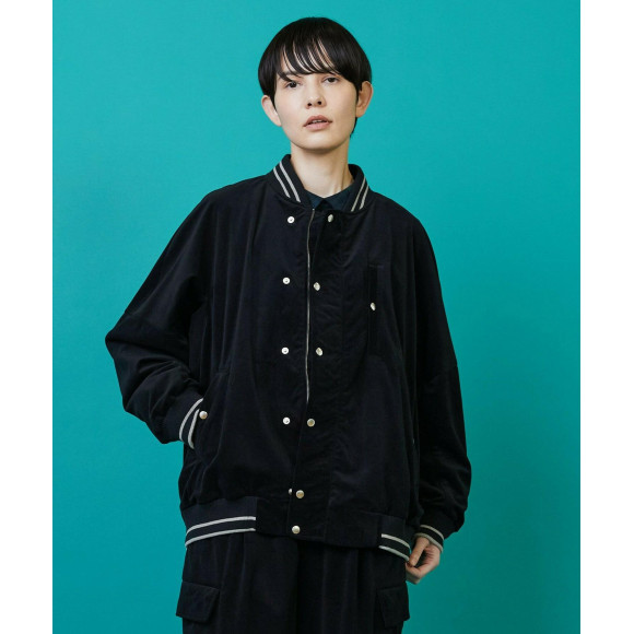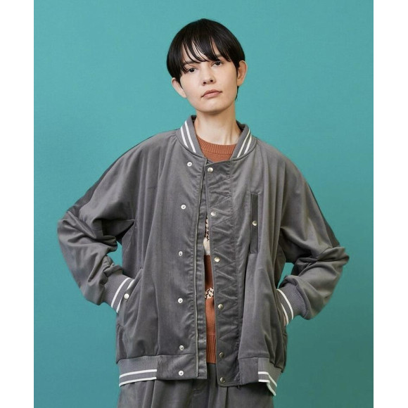 [Design] Based on a military-style jacket, a large drop shoulders create a relaxed silhouette. The elegant luster of the material makes this item look mature.
