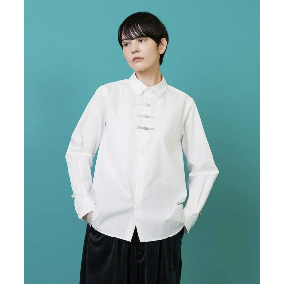 [Design] A shirt-colored blouse with a bold Chinese button motif on the front. The exquisite color scheme and casual accents make it an item that can be worn alone, as well as an inner garment.