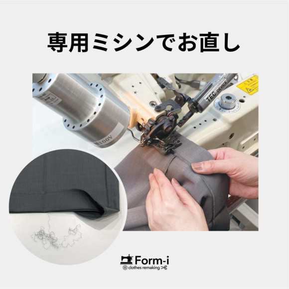 You can also change it to a stitching finish for those who say that the hem is fraying "ears". Please bring your products and consult with the staff. (It will be finished with a sewing machine visible on the table.)